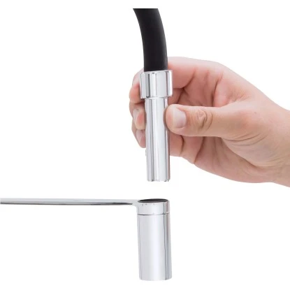 Gästen zeigst du als erstes am liebsten deine neue Küchenarmatur? Die baliv Küchenarmatur KI-1330 ist ein echter Hingucker in deinem Wohn(t)raum. Der hohe Auslauf in schwarz-matter Optik ist ein toller Kontrast zur Oberfläche der querverlaufenden Verbindung von Auslauf und Brause. Seitlich befindet sich der Hebel. Eine gerade Verbindung von Auslauf und Brause sorgt für eine extra Portion Stil. Das Spülbecken reinigst du ganz einfach mit dem Auslauf der Armatur. Der flexible Schlauch lässt sich aus der Verankerung lösen. Mit einem Spielraum von 360° erleichtert er dir die Reinigung ungemein. So geht dir das Reinigen des Spülbeckens oder der Abwasch von großen Gefäßen leicht von der Hand.