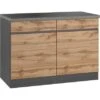 Top-Qualität „Made in Germany“ zum kleinen Preis. Der Schubkastenschrank überzeugt durch eine geradlinige Formgebung und zeichnet sich durch ein modernes Ambiente aus. Dabei bietet Ihnen der hochwertige Schubkastenschrank ein reizvolles Dekor in der Farbe Anthrazit kombiniert mit San Remo Eiche und eignet sich optimal als passende Ergänzung zur Küchenserie Lara.