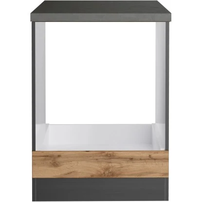 Mit dem Herdumbauschrank Turin von Held Möbel können Sie ihre Küchenzeile perfekt ergänzen. Optisch begeistert der Schrank durch die klaren Linien sowie die zweifarbige Gestaltung. Da der Schrank in zwei Farbkombinationen verfügbar ist, können Sie die Küche im Mix-and-Match Stil einrichten. Eine 28 mm starke Arbeitsplatte in Beton-Optik ohne Ausschnitt für den variablen Einsatz eines Kochfelds ist inklusive.