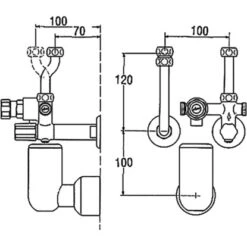 für 100 mm Wandabstand der Anschlussstutzen des Druckspeichers