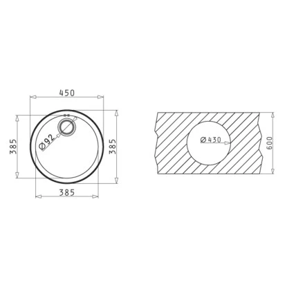 Spülenmaß: Ø 45 cm