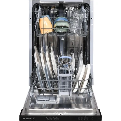 Der vollintegrierte Respekta Einbaugeschirrspüler GSP45VV zeichnet sich besonders durch seinen geringen Energie- und Wasserverbrauch aus. Doch auch die einfache Bedienung und der effiziente Innenraum machen diesen Geschirrspüler zu einem unersetzlichen Assistenten in Ihrer Küche. Genießen Sie den Abend und lassen Sie den Geschirrspüler das Geschirr reinigen.