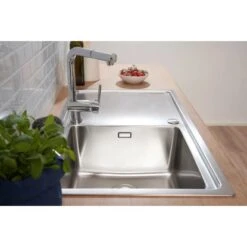 + Edelstahlspüle mit 1 Becken und Abtropffläche