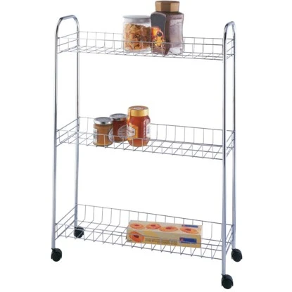 Das Rollregal von Wenko wurde speziell für schmale Zwischenräume konzipiert. Damit können Sie bisher offene Lücken zwischen Waschmaschine und Wand oder Küchenboard und Wand optimal nutzen. Mit drei Ablagen bietet es viel Platz zur Aufbewahrung von Waschmittel, Weichspüler, Wäscheklammern oder Gewürze und Kochutensilien.
